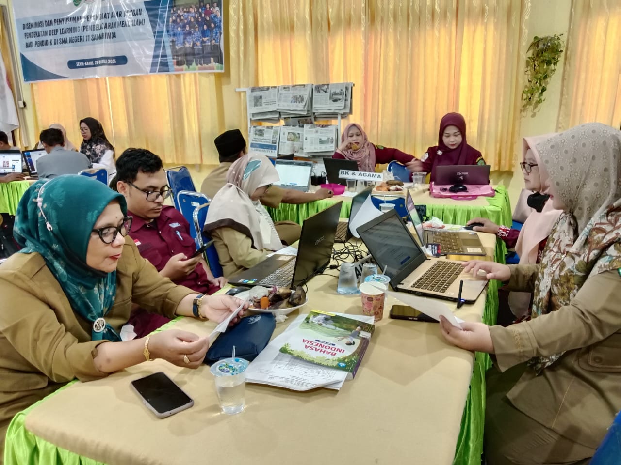 Selasa, 29 Juli 2025. Memasuki hari kedua kegiatan Diseminasi dan Penyusunan Perangkat Ajar dengan Pendekatan Deep Learning (Pembelajaran Mendalam), para pendidik di SMA Negeri 11 Samarinda semakin aktif dan antusias dalam menggali serta mengembangkan strategi pembelajaran yang lebih bermakna dan transformatif. Kegiatan ini bertujuan untuk memastikan bahwa guru memiliki pemahaman dan keterampilan yang utuh dalam merancang pembelajaran yang mendorong kemampuan berpikir tingkat tinggi dan pemecahan masalah nyata pada peserta didik.