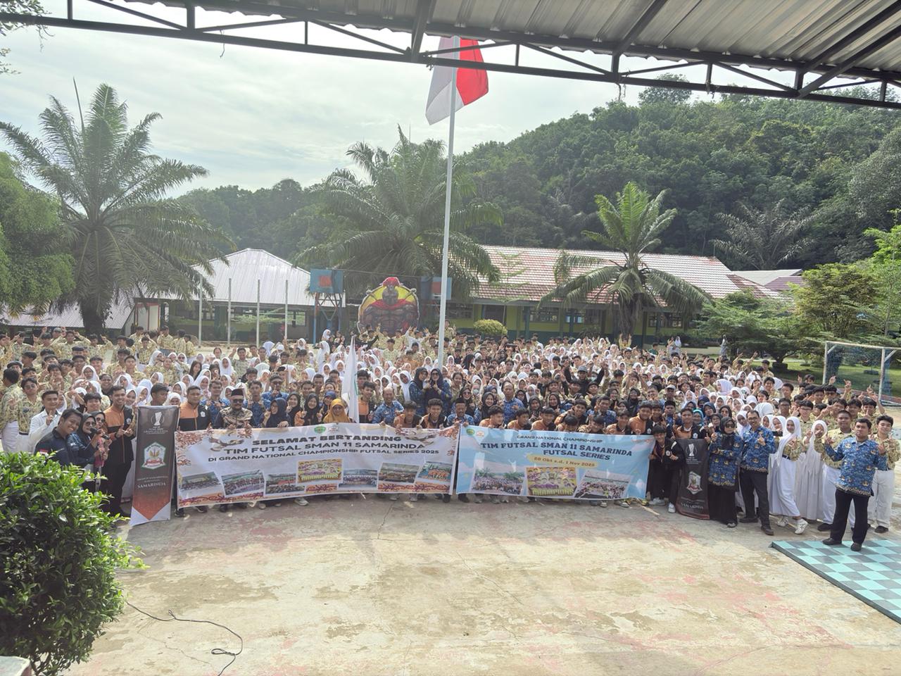Pada hari Jumat, 17 Oktober 2025, SMA Negeri 11 Samarinda menggelar acara pelepasan tim futsal sekolah yang akan berlaga pada ajang bergengsi Grand National Championship Futsal Series 2025 di Jakarta. Kegiatan pelepasan ini berlangsung di halaman sekolah dengan suasana penuh semangat dan kebanggaan.